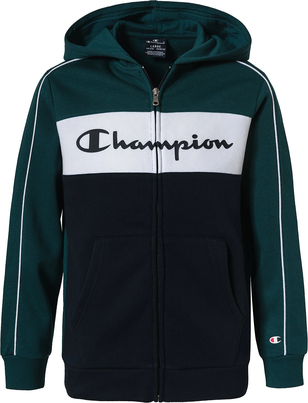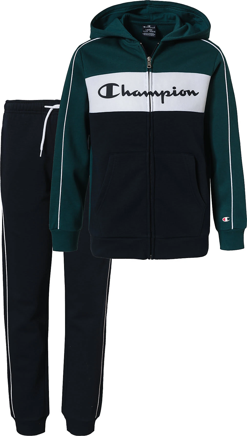 Mit diesem Trainingsanzug aus dem Hause Champion steht sportlichen Aktivitäten nichts im Wege. Das Material besteht anteilig aus hautfreundlicher Baumwolle, die ein angenehmes Trageerlebnis begünstigt.