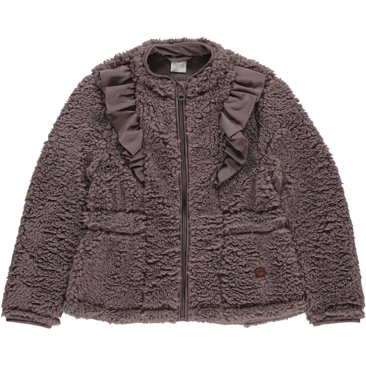 Warme Fleecejacke mit niedlichen Rüschen an den Schultern. Die Jacke hat praktische Taschen und ist mit einem Reißverschluss auf der Frontseite zu schließen. . Das verwendete Polyester wird in Zusammenarbeit mit der Firma Repreve produziert. Aus PET-Flaschen wird ein recyceltes Garn hergestellt, das zum Bespiel für die Fertigung von Oberbekleidung verwendet werden kann. Dadurch wird Wasser und Energie gespart. Polyester 100%