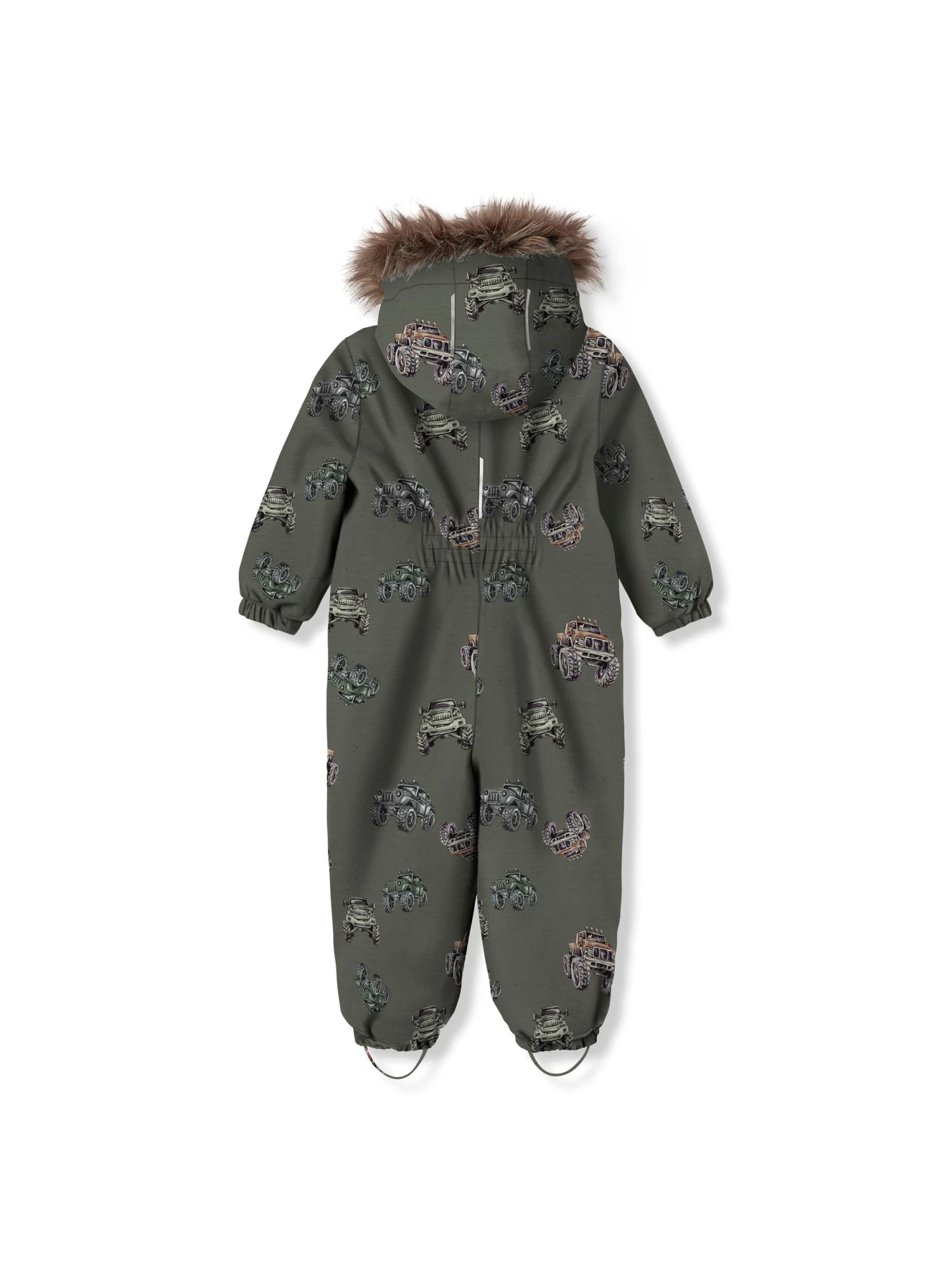 Dieser funktionelle Schneeanzug bietet Kindern Wärme und Trockenheit bei Erkundungen in der Natur. Eine gute Wattierung und der Innenfleece am Rumpf sorgt für kuschelige Temperaturen. Der Overall ist ausgestattet mit einer abnehmbaren Kapuze und einer abnehmbaren Kunstfellumrandung. Auf der Front ist ein langer, robuster Reißverschluss mit Klemmschutz. An den Ärmeln und an den Hosenbeinen sind elastische Bündchen, damit keine Kälte reinzieht. Verstellbare Fußschlaufen am Hosensaum sorgen für einen optimalen Halt. Der Skianzug ist rundum bedruckt.